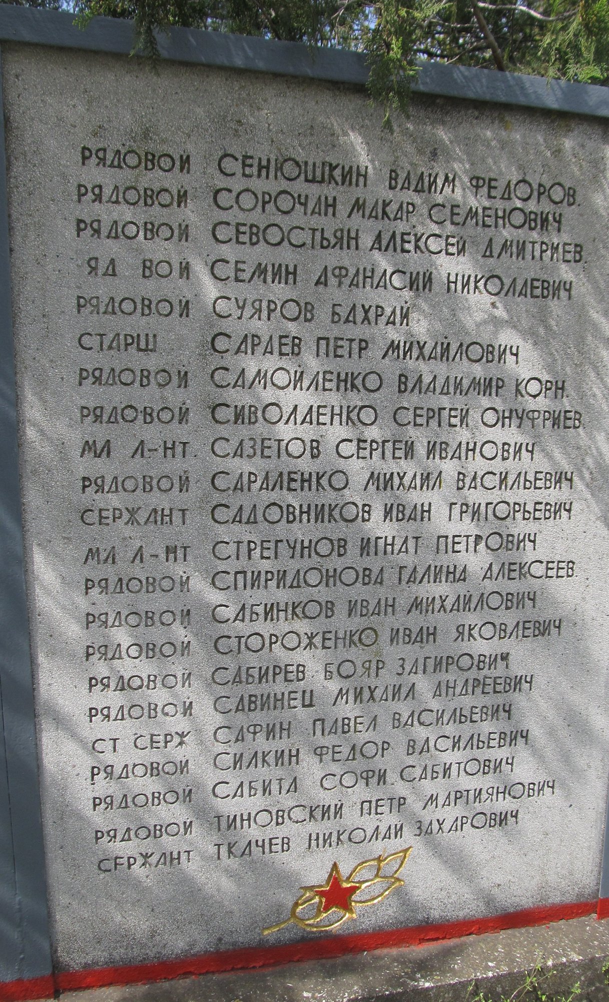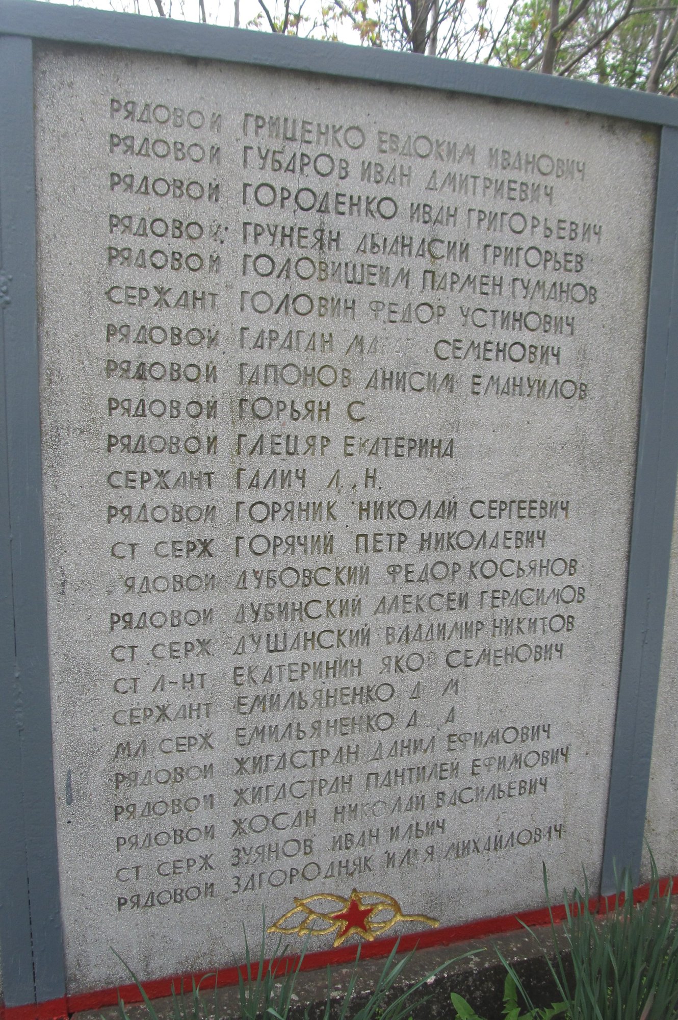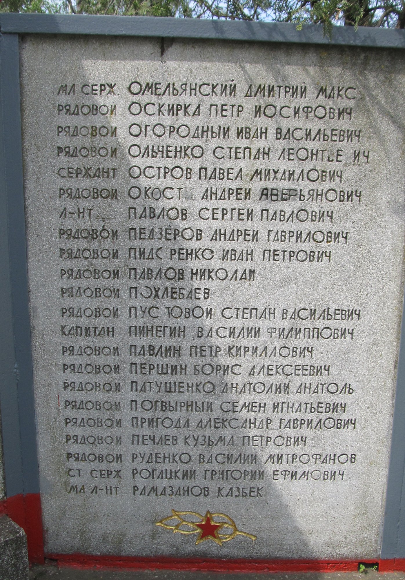 Баннеры, установленные на Мемориале Славы села Ближний Хутор с фамилиями советских воинов, погибших при освобождении села и умерших от ран сельском в госпитале в 1944 году.