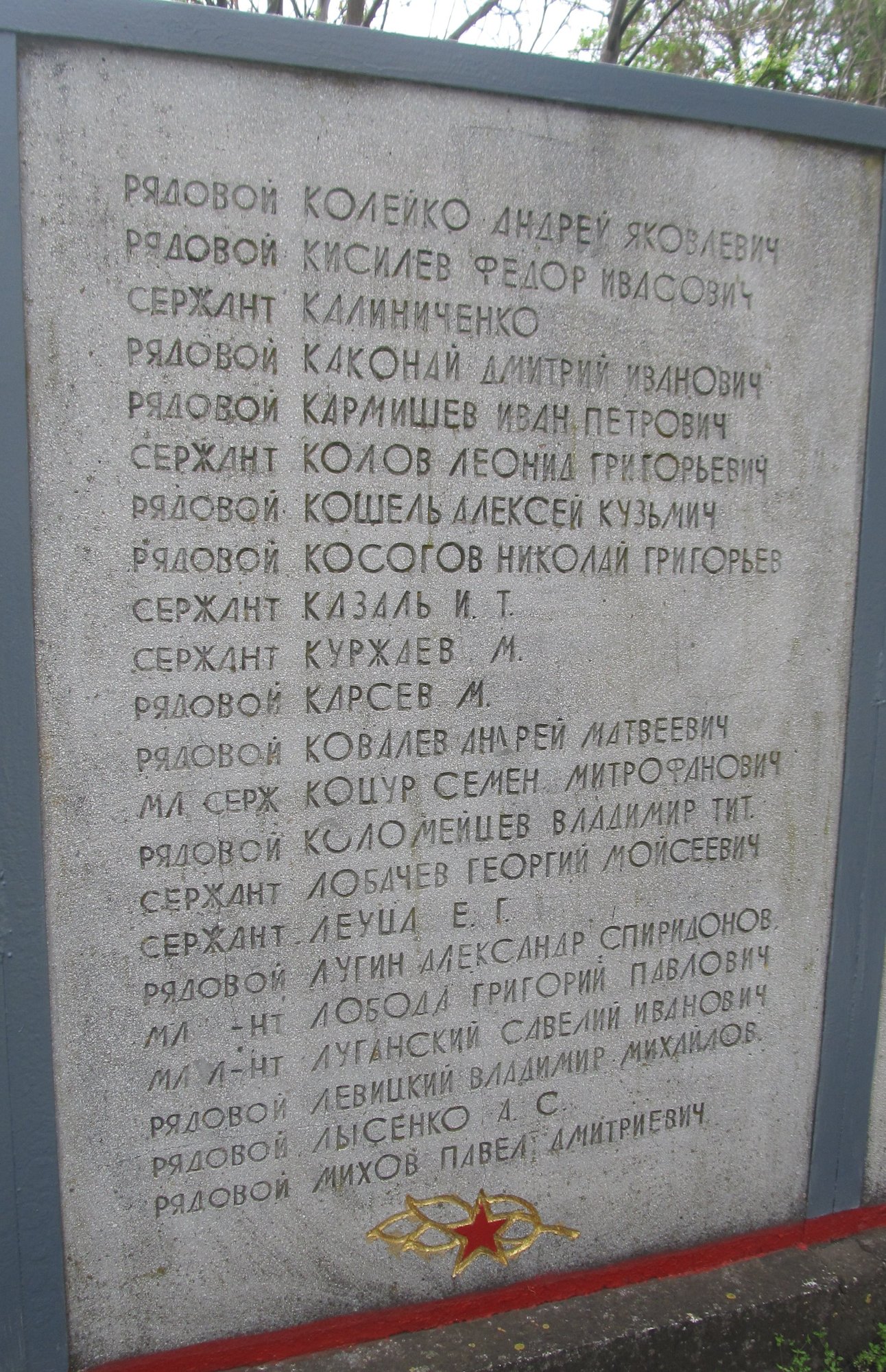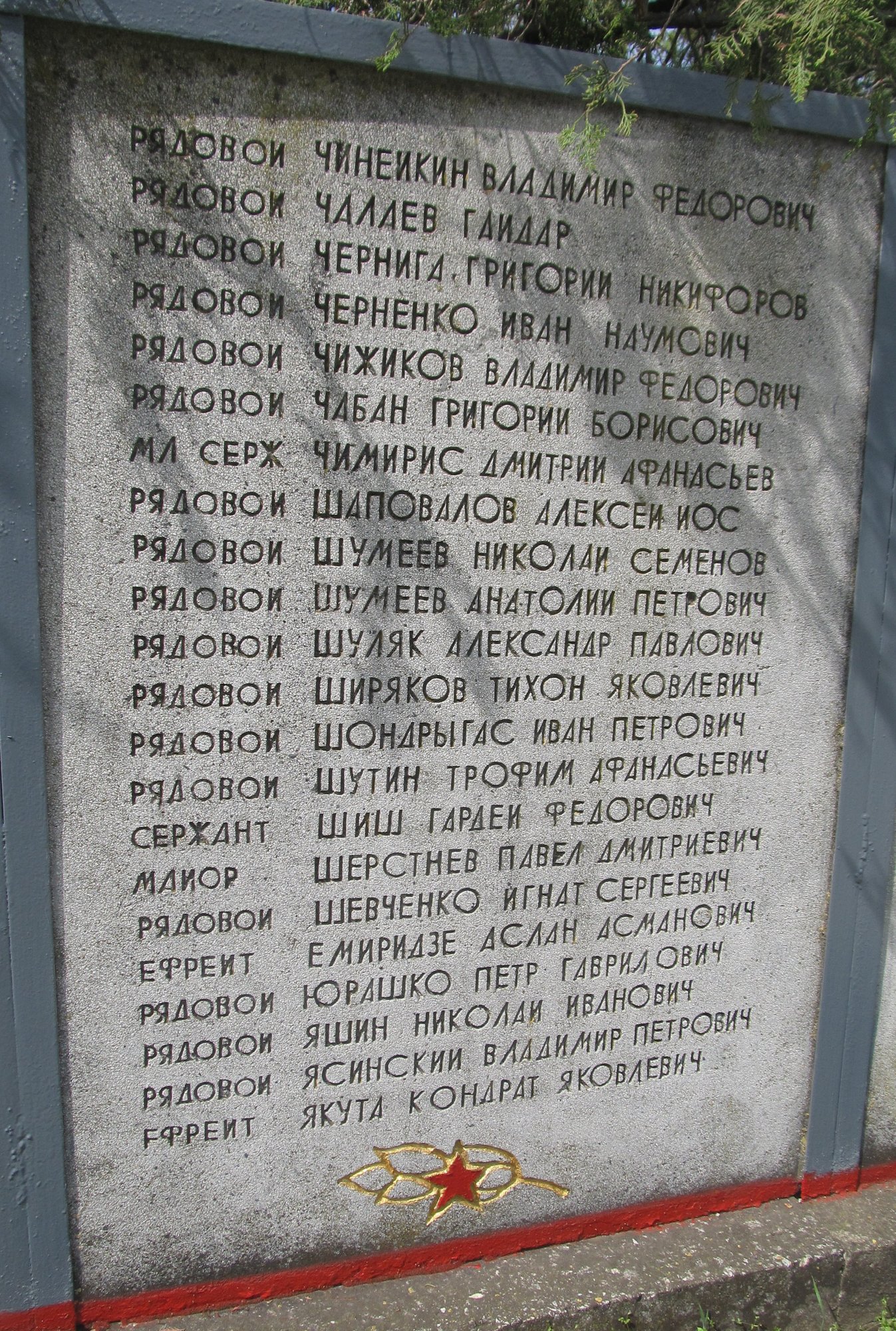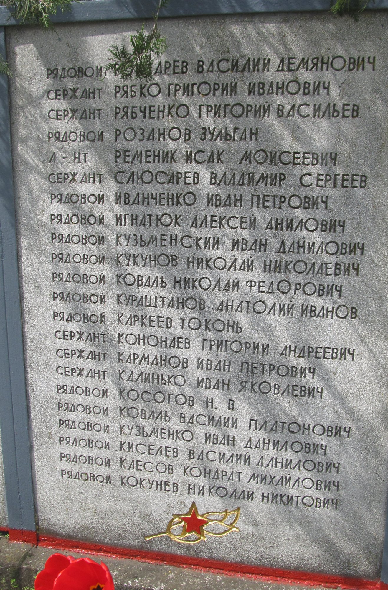 Баннеры, установленные на Мемориале Славы села Ближний Хутор с фамилиями советских воинов, погибших при освобождении села и умерших от ран сельском в госпитале в 1944 году.